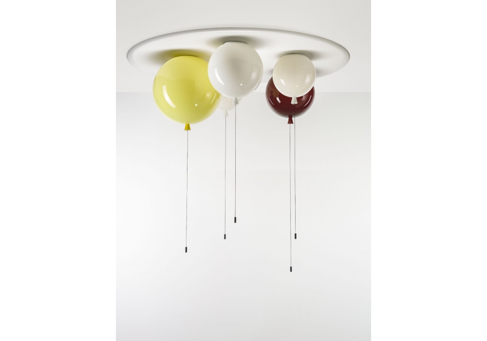 Memory Set Large firmata da Boris Klimek per Brokis è una lampada da soffitto con ancoraggio in metallo e rosone in MDF. I diffusori sono in vetro con superficie lucida o opaca e si possono scegliere in diverse finiture. I diffusori sono cinque, ed hanno un sistema di accensione e spegnimento indipendente per mezzo di uno switch. Lo swicht puo essere azionato per mezzo di una cordicella colorata a scelta tra bianca o nera. Le sorgenti luminose adoperate sono di tipo LED o alogeno.