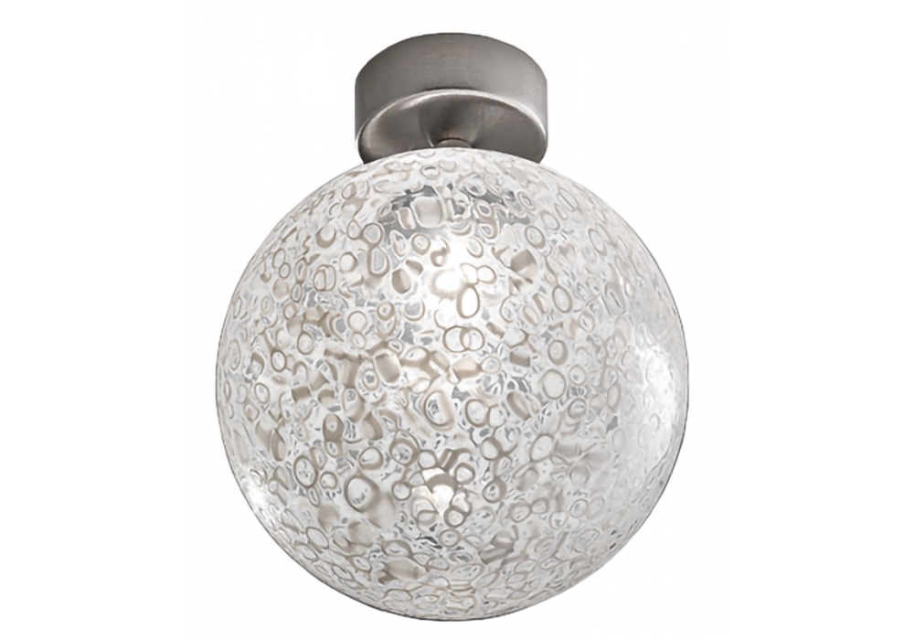 Rina firmata da Barbara Maggiolo per Vistosi è una lampada da soffitto o parete con struttura portante in metallo circolare verniciata color nichel satinato. Il diffusore è in vetro color bianco murrina con supurficie porosa ed adotta una sorgente luminosa di tipo LED o alogena dimmerabile in differenti gradazioni di luce.