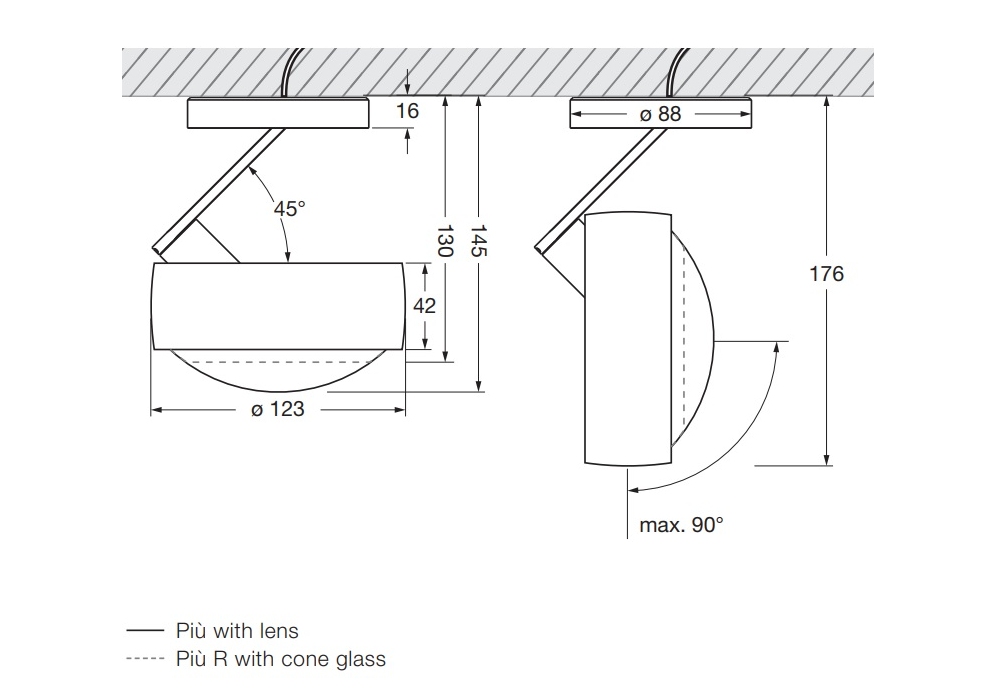 Più Alto 3D firmato da Occhio è un faretto LED da parete/soffitto con emissione luminosa unilaterale con ottica a lente (Più) o vetro a cono piatto con lente interna (Più R). Realizzato in alluminio, ottone, acciaio cromato o verniciato, plastica ottica e vetro. Disponibile in diverse finiture e modelli.