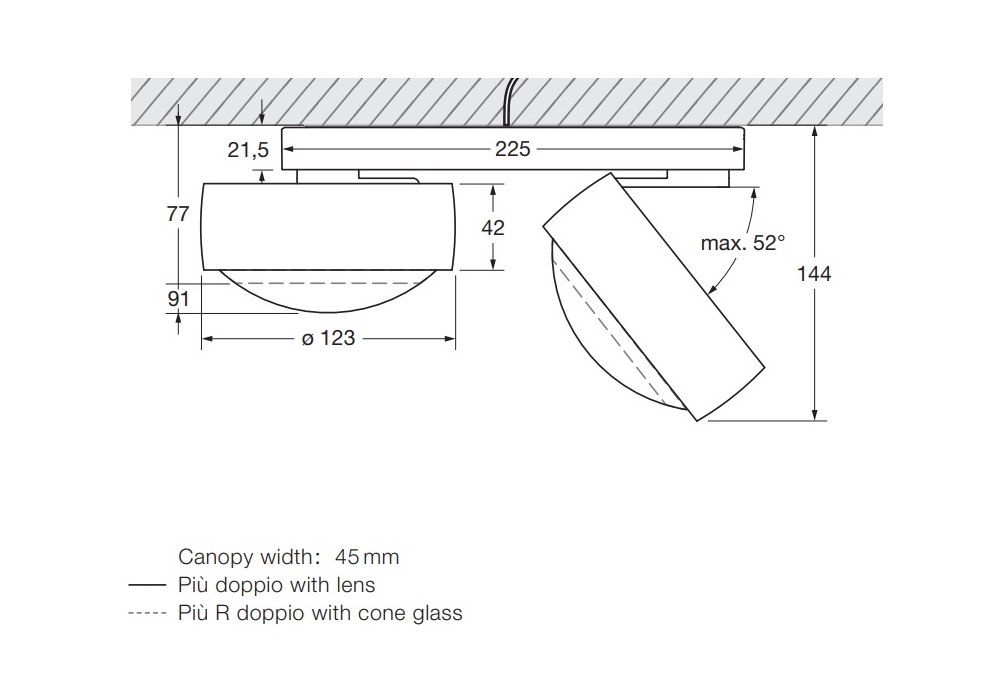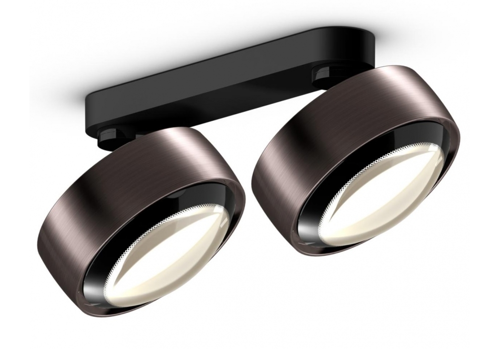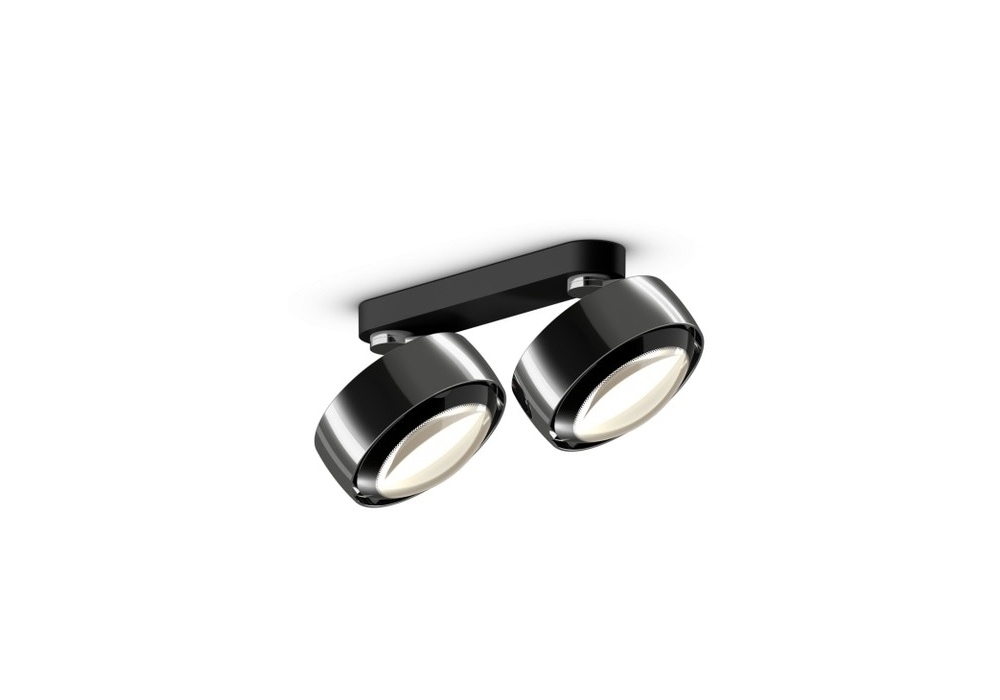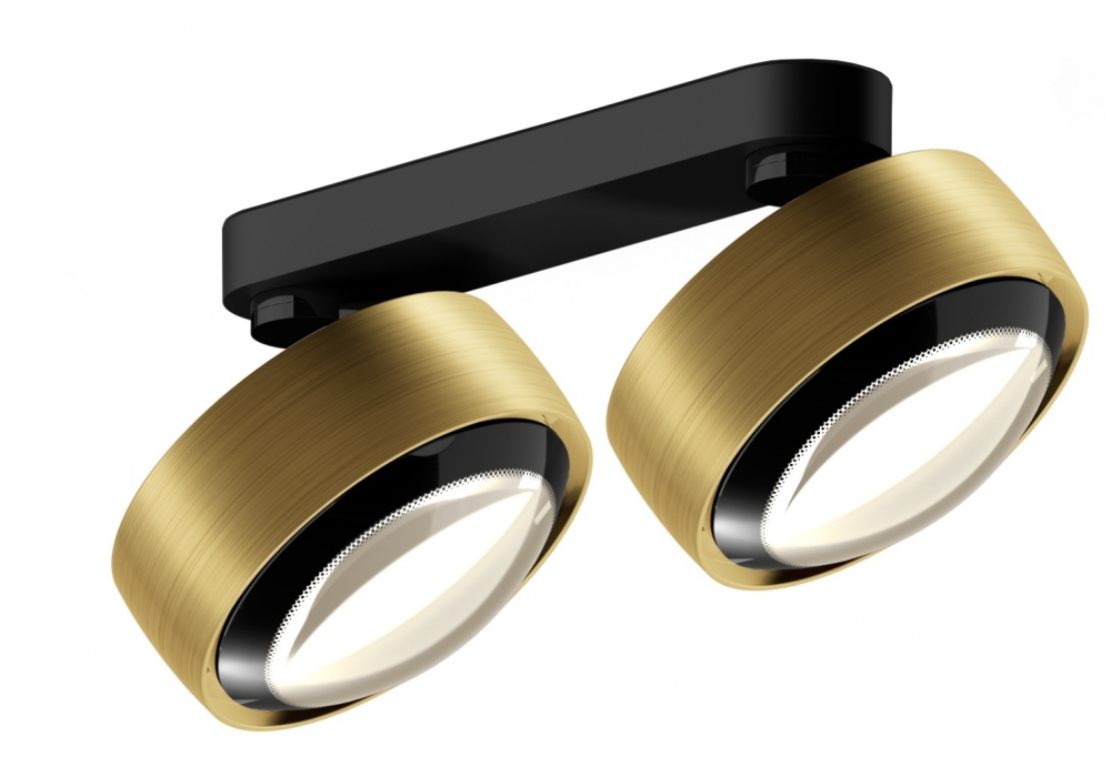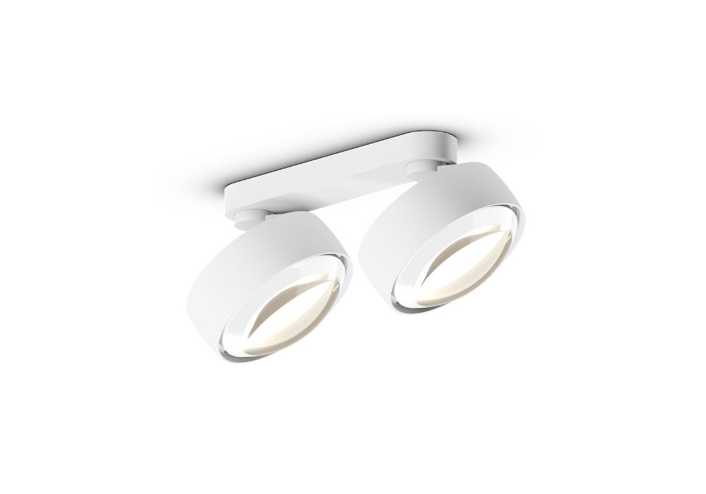Più Alto Doppio firmato da Occhio è un faretto LED da soffitto con due diffusori con emissione luminosa unilaterale con ottica a lente (Più) o vetro a cono piatto con lente interna (Più R). Realizzato in alluminio, ottone, acciaio cromato o verniciato, plastica ottica e vetro. Disponibile in diverse finiture e modelli.