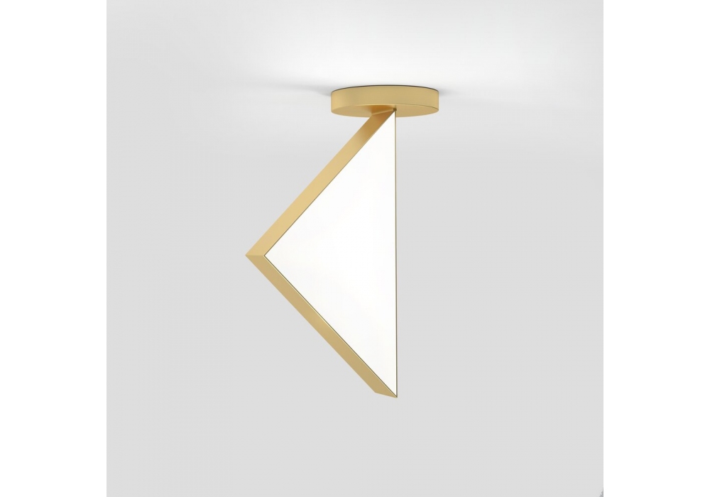 Flat Circle Triangle firmata da Atelier Areti è una lampada da soffitto realizzata in metallo verniciato o in ottone spazzolato, pannello in acrilico. Disponibile in due modelli.
