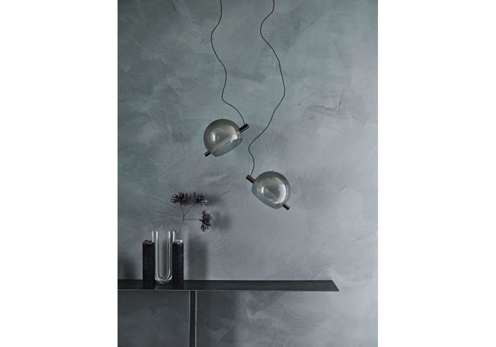 Cody firmata da STC Studio per Cattelan Italia è una lampada da soffitto a LED con paralume in vetro soffiato trasparente o fumé. Placca a soffitto in acciaio cromato nero. Disponibile con telecomando e dimmer. Disponibile in diverse configurazioni.