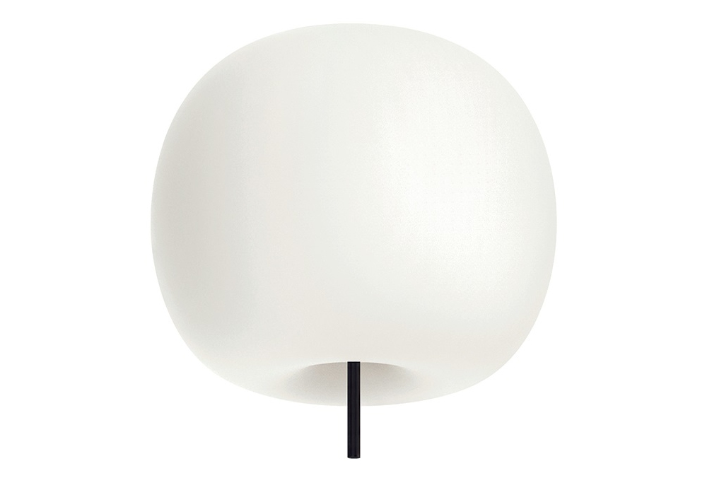 Kushi XL firmata da Alberto Saggia & Valerio Sommella per Kundalini è una lampada da soffitto con diffusore in vetro opale incamiciato e soffiato e struttura in metallo verniciato nelle finiture: nero, rame e ottone.