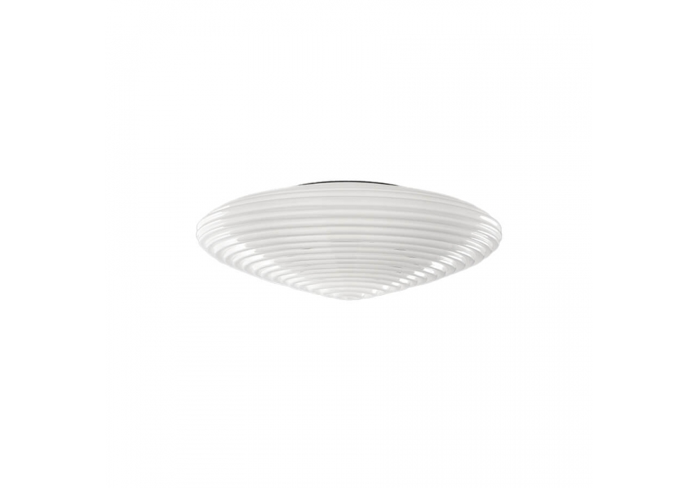 Spirit LED firmata da Marco Acerbis per Vistosi è una lampada da soffitto o parete con struttura portante in metallo verniciato di colore bianco opaco. Il diffusore è in vetro con una struttura dalla forma svasata con superficie rigata e scherma una sorgente luminosa di tipo LED dimmerabile in differenti gradazioni di luce.