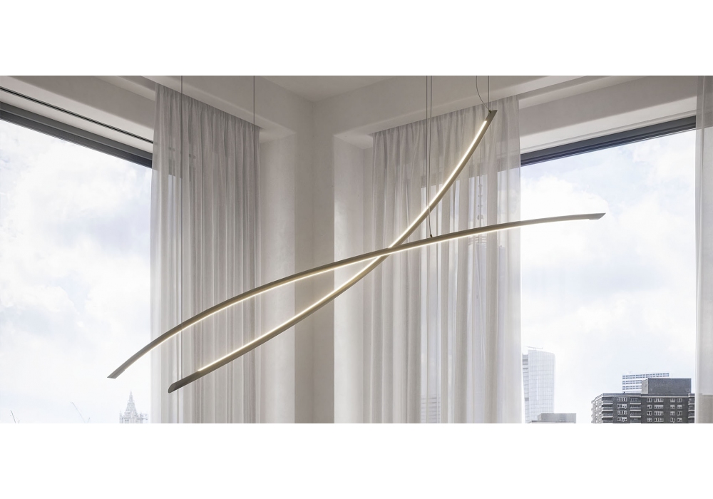 Katana Magnum firmata da Studio Kronos per Cattelan Italia è una lampada da soffitto con struttura e attacco a soffitto in acciaio verniciato goffrato titanio. Illuminazione a LED. Optional telecomando e ricevitore.