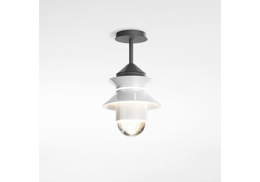 Santorini C firmata da Sputnik Estudio per Marset è una lampada da soffitto realizzata in policarbonato, paralume in vetro e supporto in acciaio inossidabile. Disponibile in diverse finiture.