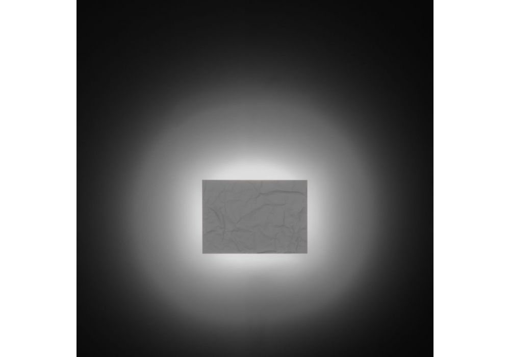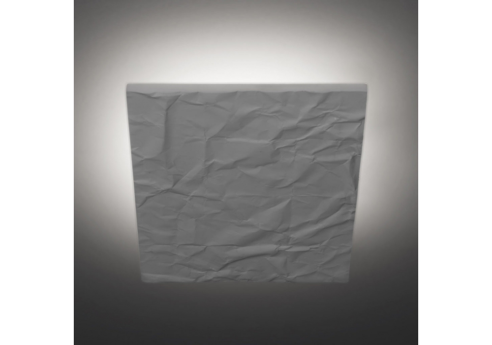 Luna Quadra firmata da Carlo Guglielmi per Firmamento Milano è una lampada da soffitto / parete a luce indiretta realizzata in resina poliestere caricata con polveri di marmo.