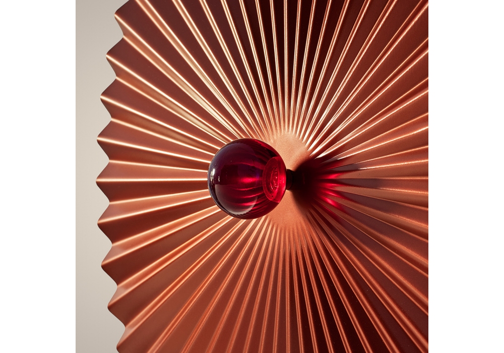 Plissé firmata da Daniela Puppa per Firmamento Milano è una lampada da soffitto / parete a luce indiretta realizzata in alluminio verniciato e pomolo in vetro soffiato. Disponibile in diverse finiture e dimensioni.