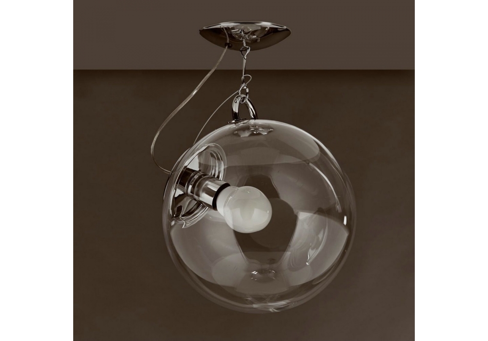 Miconos firmata da Ernesto Gismondi per Artemide è una lampada da soffitto con struttura portante in acciaio verniciato. Il diffusore è di forma sferica in vetro soffiato trasparente ed adotta una sorgente luminosa di tipo LED dimmerabile. Miconos è disponibile in differenti finiture.