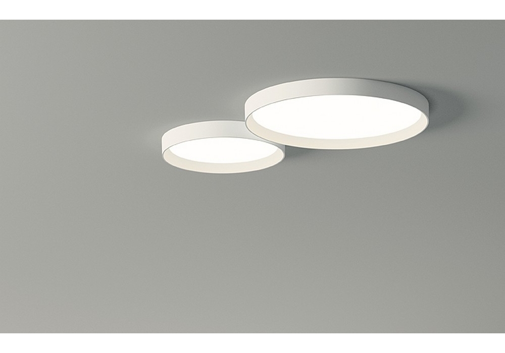 Up Double Ring firmata da Ramos & Bassols per Vibia è una lampada da soffitto dalla forma circolare con struttura portante e corpo lampada in alluminio verniciato. I diffusori sono in metacrilato e schermano delle sorgenti luminose di tipo LED dimmerabili. Up Double Ring è disponibile in differenti finiture, gradazioni di sorgenti luminose e dimmerabilità.