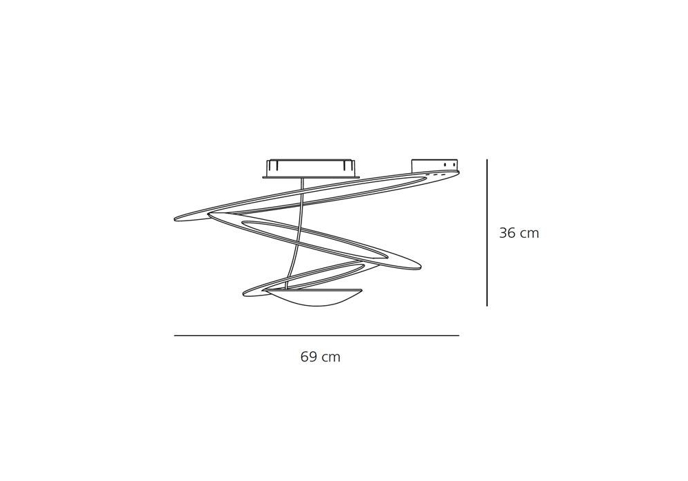Pirce Mini firmata da Giuseppe Maurizio Scutellà per Artemide è una lampada da soffitto lampada da soffitto in alluminio verniciato di colore bianco. Da un disco sottile si aprono volute fluttuanti che fungono da riflettori è schermano una sorgente luminosa di tipo LED dimmerabile.