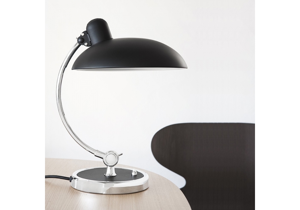 Kaiser Idell Luxus firmata da Christian Dell Fritz Hansen è una lampada da tavolo in acciaio. Disponibile in diverse finiture. Cavo tessile nero.