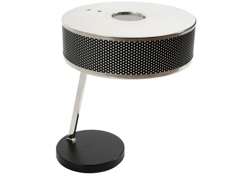 Marcus firmata da DelightFULL è una lampada da tavolo, la base e il paralume sono realizzati in alluminio e laccati di un nero opaco. Il corpo presenta una finitura nichelata.
