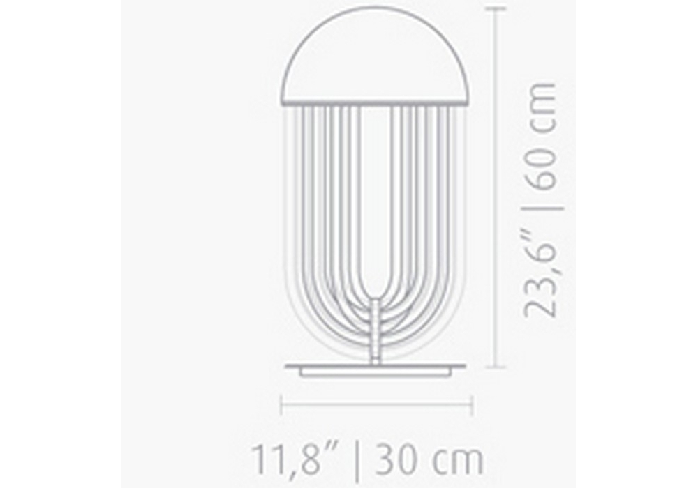 Turner firmata da DelightFULL è una lampada da tavolo, ha una forma art deco con la possibilità di ruotare gli archi nella posizione desiderata, in modo da poter creare la composizione perfetta per qualsiasi ambiente. Gli archi sono realizzati in ottone con un rivestimento d'oro e il coperchio superiore in alluminio verniciato bianco.