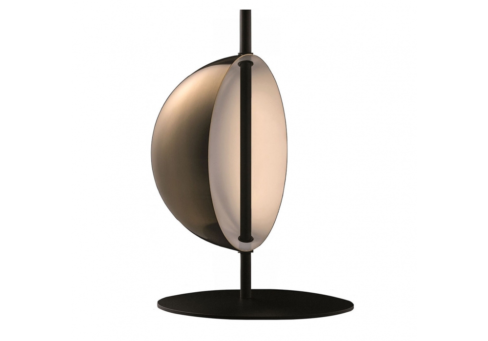 Superluna firmata da Victor Vasilev per Oluce è una lampada da tavolo con base circolare ed asta vericale in metallo verniciato. Il diffusore è una semisfera orientabile in metallo verniciato e scherma una sorgente luminosa di tipo LED dimmerabile. Superluna è disponibile in differenti finiture.