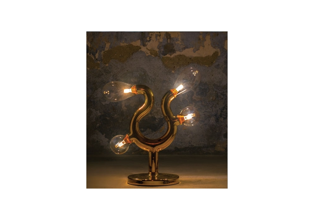 The Four Bulb firmata da Matteo Cibic per Scarlet Splendour è una lampada LED a luca calda bianca. É realizzata in ceramica con finitura oro 24K e vetro soffiato a mano.