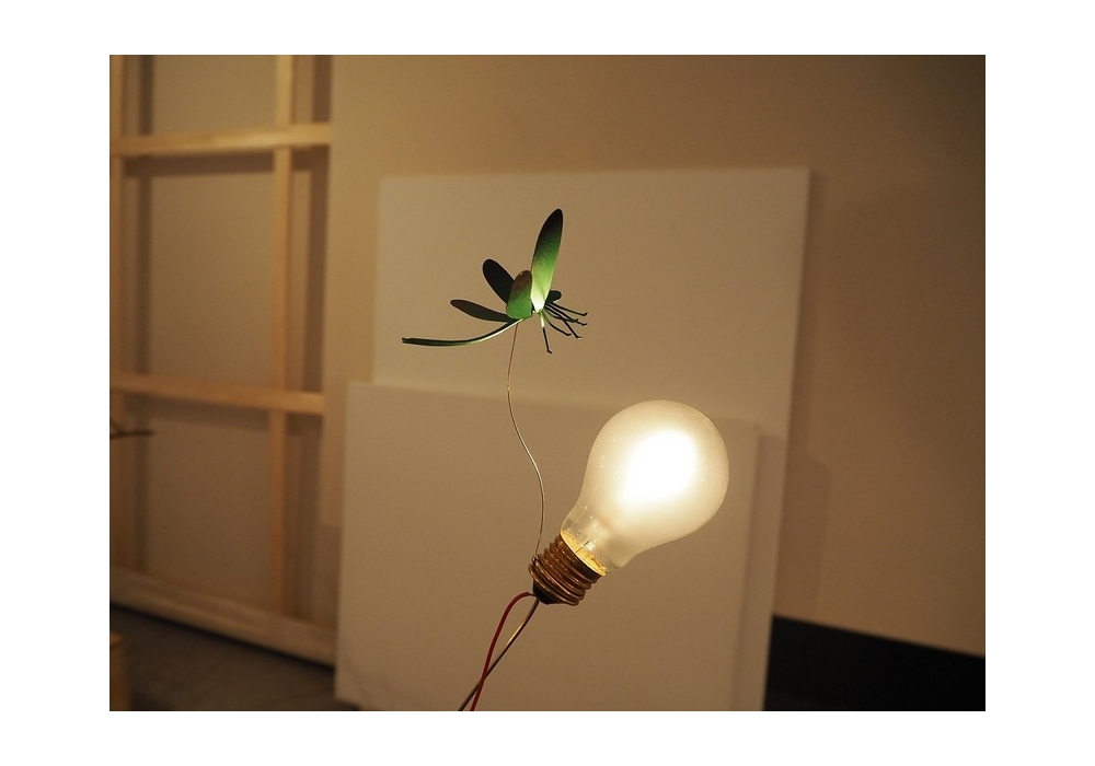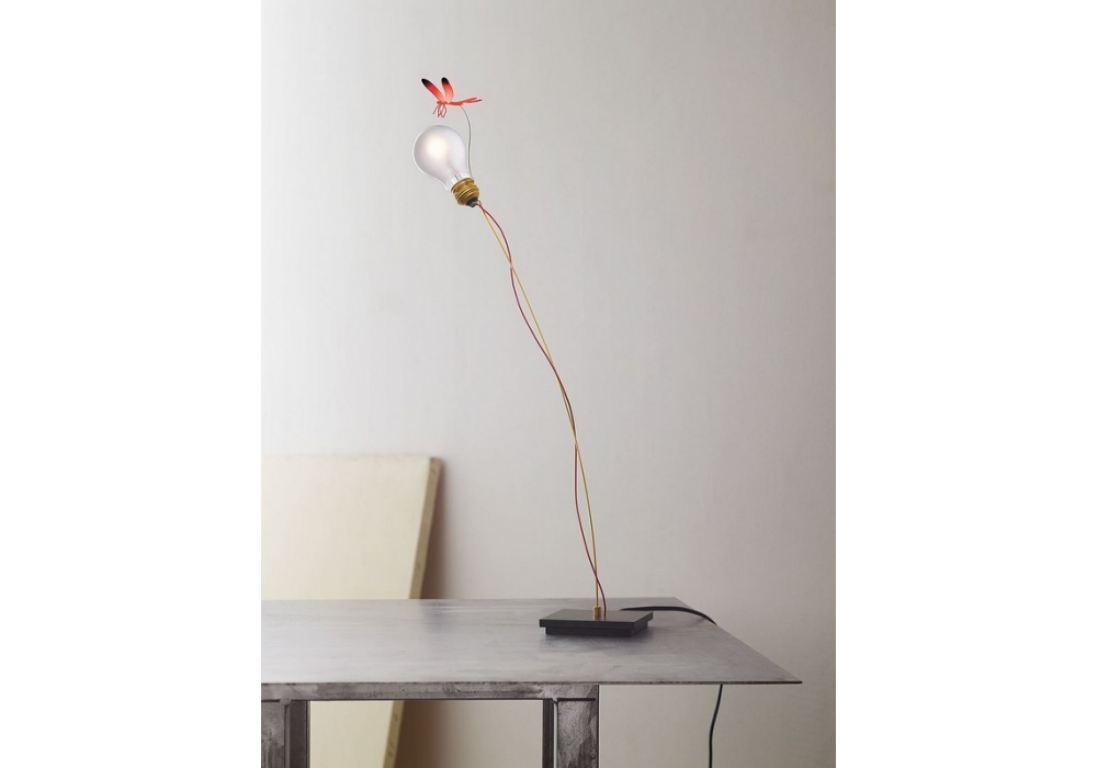 I Ricchi Poveri Bzzzz firmata e prodotta da Ingo Maurer è una lampada da tavolo con applicazione a forma di libellula, realizzata in alluminio anodizzato in 3 diverse finiture. La struttura è in acciaio e ottone.