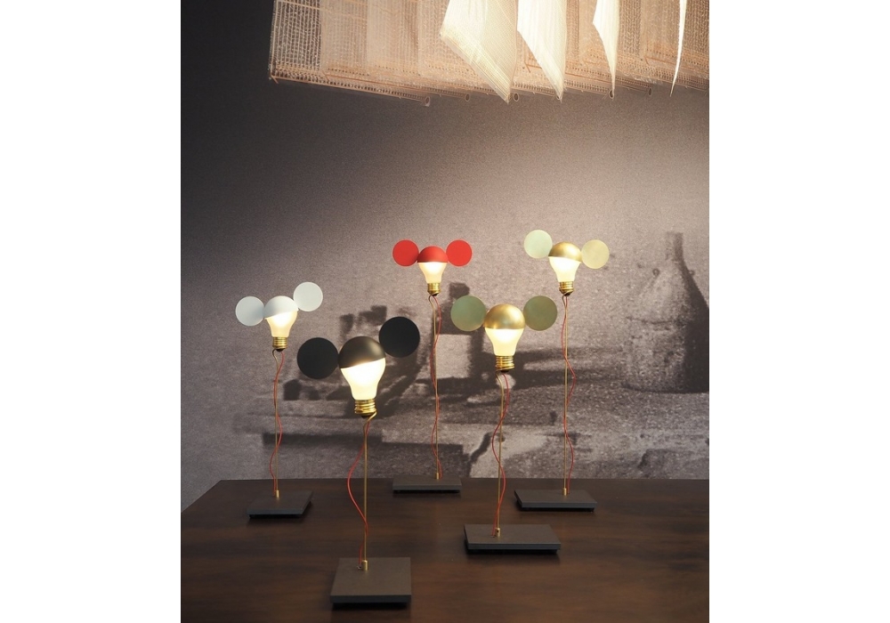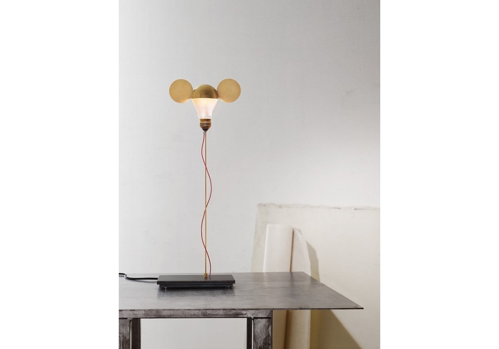I Ricchi Poveri Toto è una lampada da tavolo firmata da Ingo Maurer. Acciaio, cappello in ottone laccato, lampadina alogena a basso voltaggio. Trasformatore regolabile con cursore, nero.