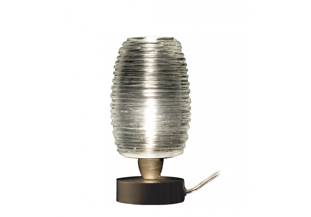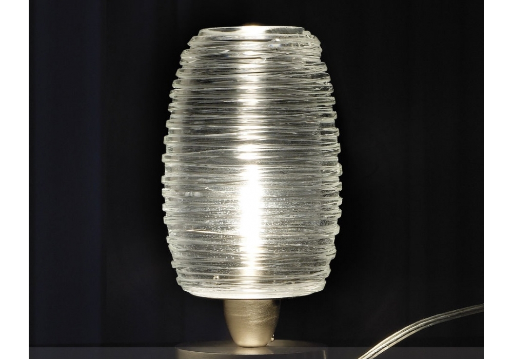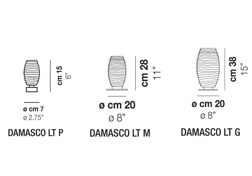 Damasco firmata da Paolo Crepax per Vistosi è una lampada da tavolo con struttura portante in metallo verniciata color nichel. Il diffusore è realizzato in cristallo con superficie irregolare in due differenti colorazioni cristallo/ambra o cristallo e adotta una sorgente luminosa con innesto G9 o E27 switch on/off su cavo di alimentazione. Damasco è disponibile in differenti modelli.