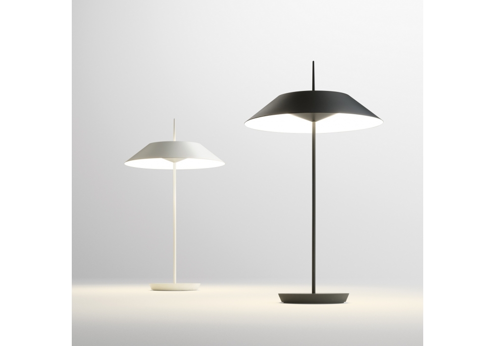 Mayfair firmata da Diego Fortunato per Vibia è una lampada da tavolo con base circolare in zamak ed asta verticale in acciaio verniciato. Il diffusore è in policarbonato e scherma una sorgente luminosa di tipo LED con dimmer a sensore ottico. Mayfair è disponibile in differenti finiture.