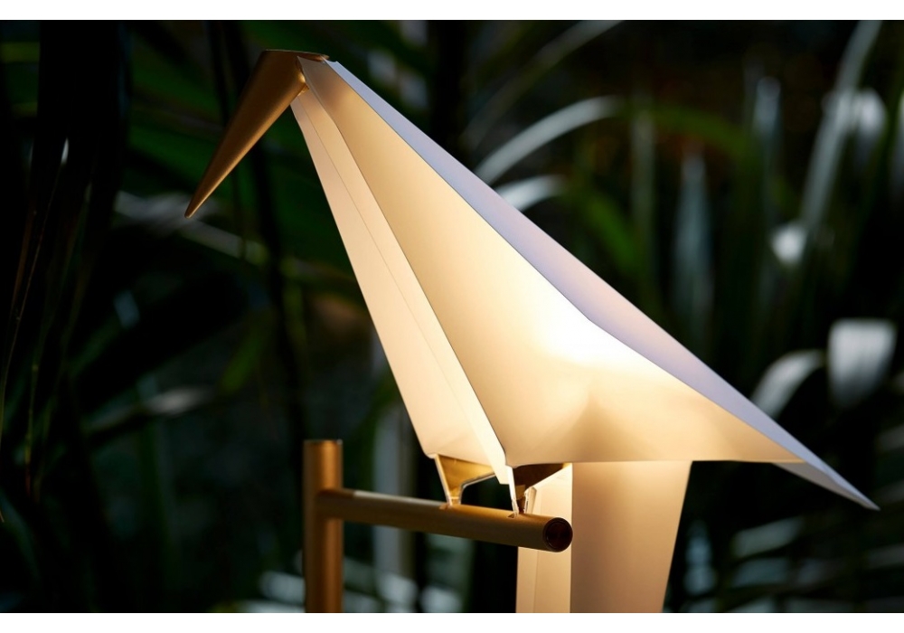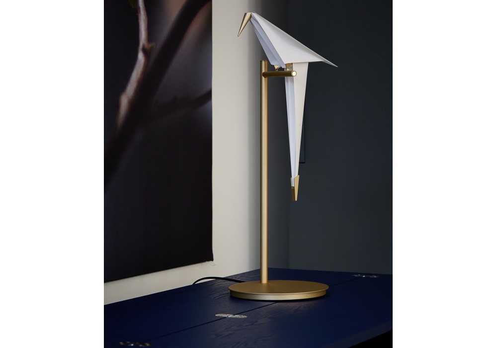 Perch Light firmata da Umut Yamac per Moooi è una lampada da tavolo a LED con struttura in acciaio e alluminio con diffusore in policarbonato e carta sintetica.