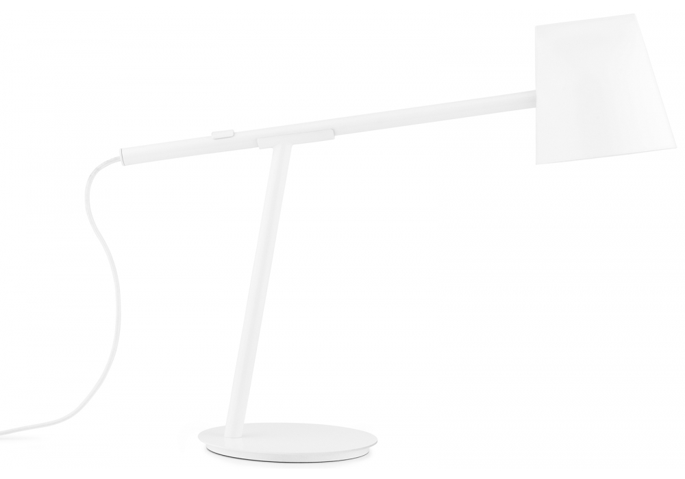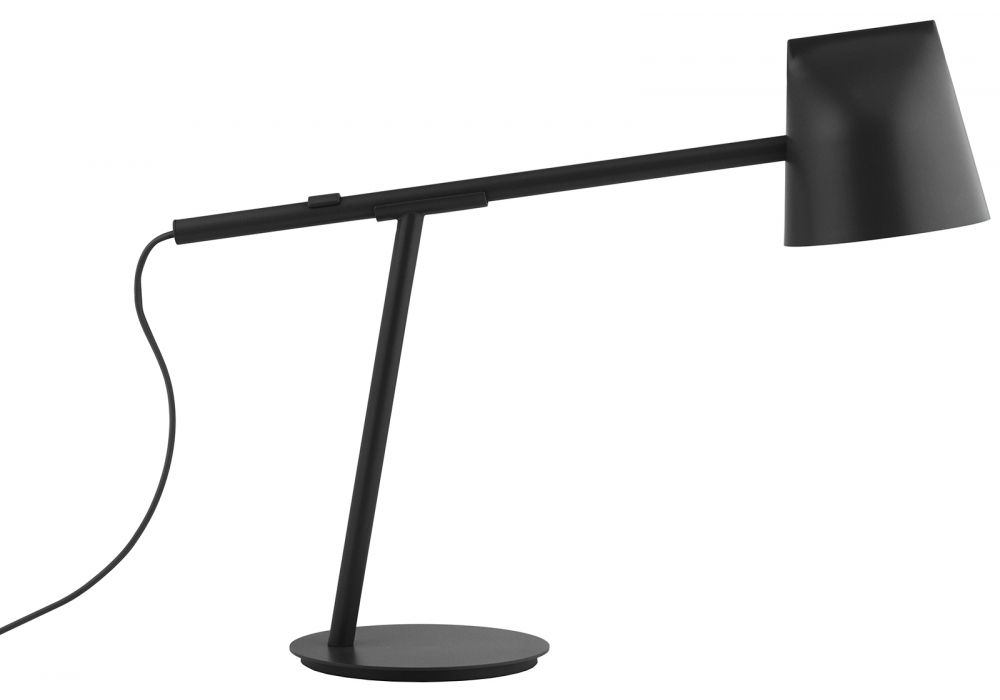 Momento firmata da Daniel Debiasi & Frederico Sandris per Normann Copenhagen è una lampada da tavolo con base circolare in metallo verniciato a polvere. Strutturata da un braccio metallico scorrevole, per avere la giusta posizione in lunghezza o profondità, e paralume in materile plastico rotabile, per direzionare la luce nel punto desiderato. La sorgente luminosa è a LED (inclusa), alimentata da un cavo rivestito in fibra tessile dello stesso colore della lampada. Momento è disponibile in versione EU (Europa) o US (U.S.A), ed in quattro differenti colorazioni; nero, bianco, grigio o verde petrolio.