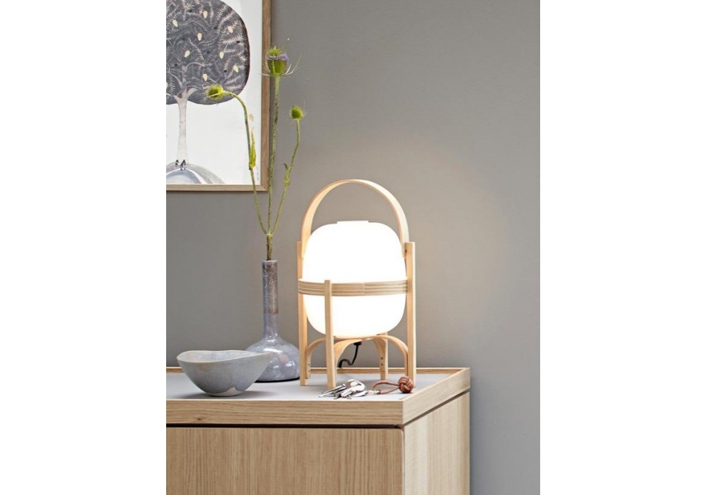 Cestita firmata da Miguel Milá per Santa&Cole è una lampada da tavolo con diffusore bianco opale. Disponibile in vetro o in plastica.