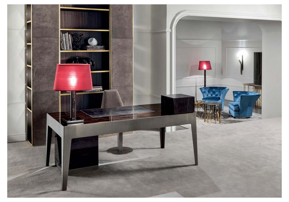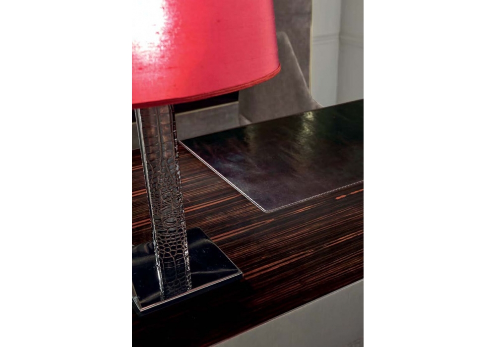Akilele firmata da Elle Studio per Longhi è una lampada da tavolo con accensione a tocca con struttura in metallo, colonna in marmo o rivestita in pelle. Paralume disponibile in dimensioni e finiture.