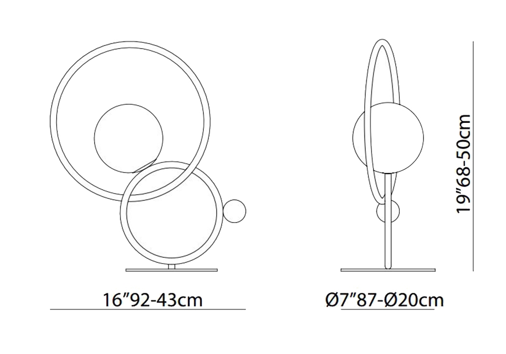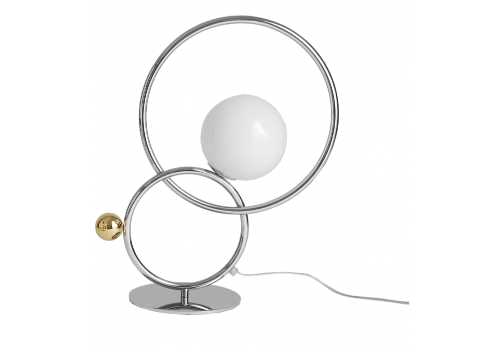 Zoe Table firmata da Melissa Lunardi e Massimo Tonetto per Venicem è una bella lampada da tavolo costituita da due anelli di metallo con un diffusore in vetro soffiato di Murano. Questa lampada è disponibile in due diverse finiture.