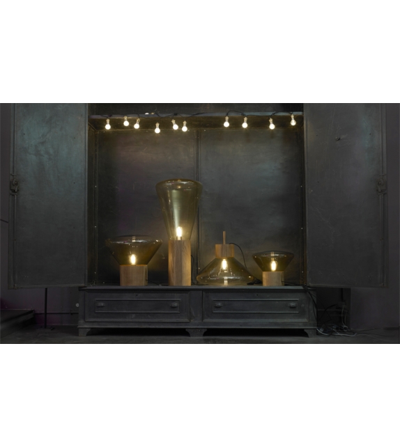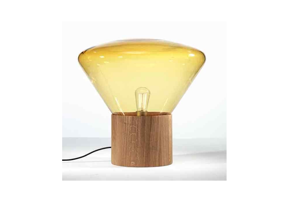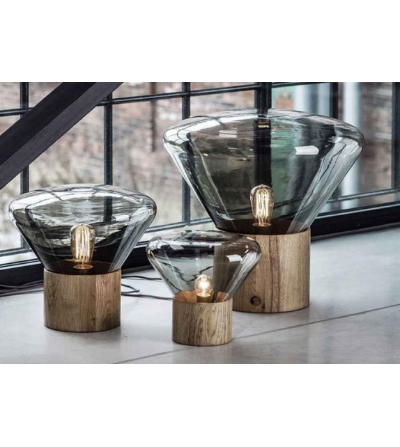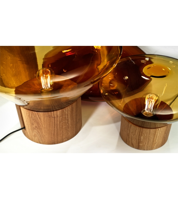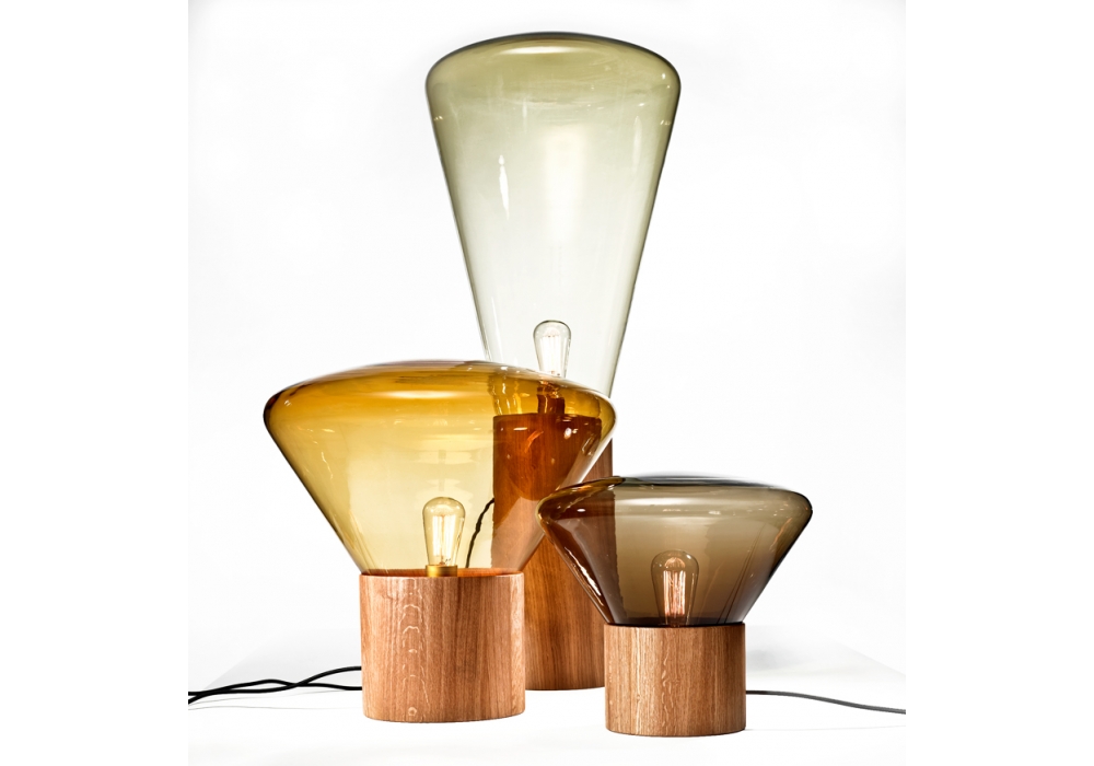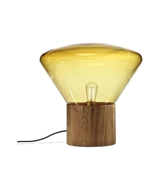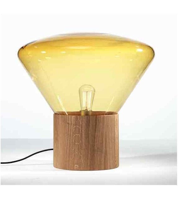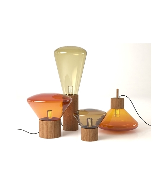 Muffins Wood 02 firmata da Dan Yeffet e Lucie Koldová per Brokis è una lampada da tavolo/terra con diffusore in vetro sfumato in differenti cromie. La base è di forma cilindrica in diverse finiture di legno trattato o naturale. La sorgente luminosa adottata è di tipo LED.