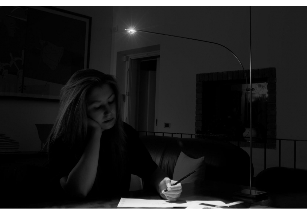 Uau firmata da Enzo Catellani per Catellani&Smith è una lampada da tavolo con base in metallo, struttura in acciaio e asta in rame. Dimmer nero.