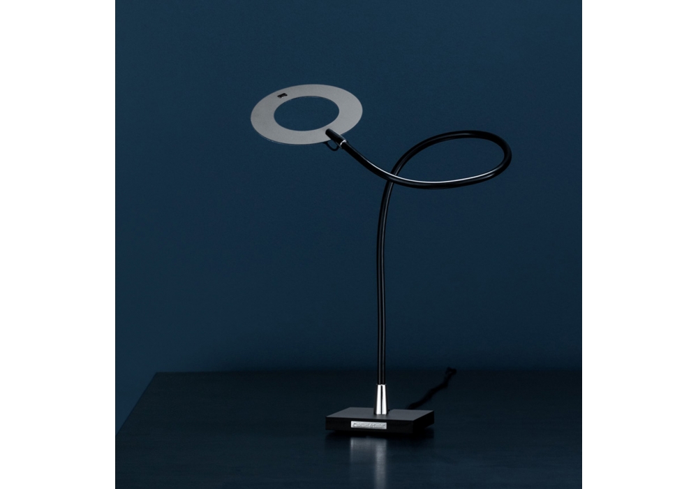Giulietta T firmata da Enzo Catellani per Catellani&Smith è una lampada da tavolo USB realizzata in metallo con struttura nera e anello disponibile in nero o nickel. Caricatore USB con presa EU, con dimmer touch-less (memoria ultimo passaggio).