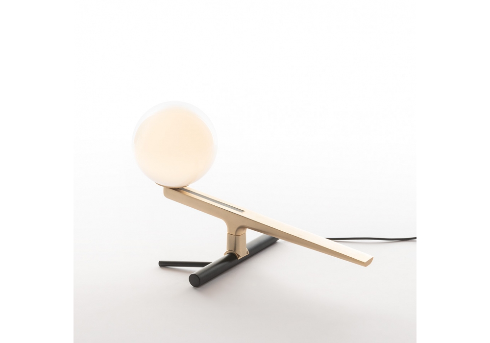 Yanzi firmata da Neri&Hu per Artemide è una lampada da tavolo con diffusore sferico in vetro soffiato bianco e base in ottone spazzolato e zama. La sorgente luminosa adottata è di tipo LED con sistema di dimmerabilità.