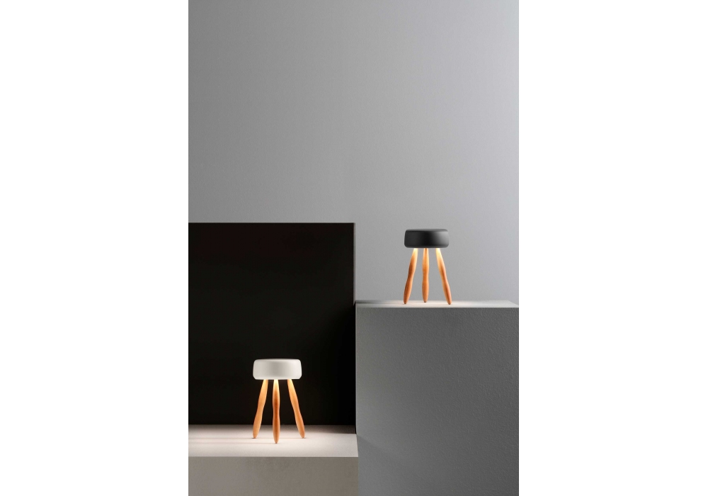 Drum firmata da Marc Sadler per Olev è una lampada da tavolo wireless con batteria ricaricabile. Disponibile in diverse finiture.