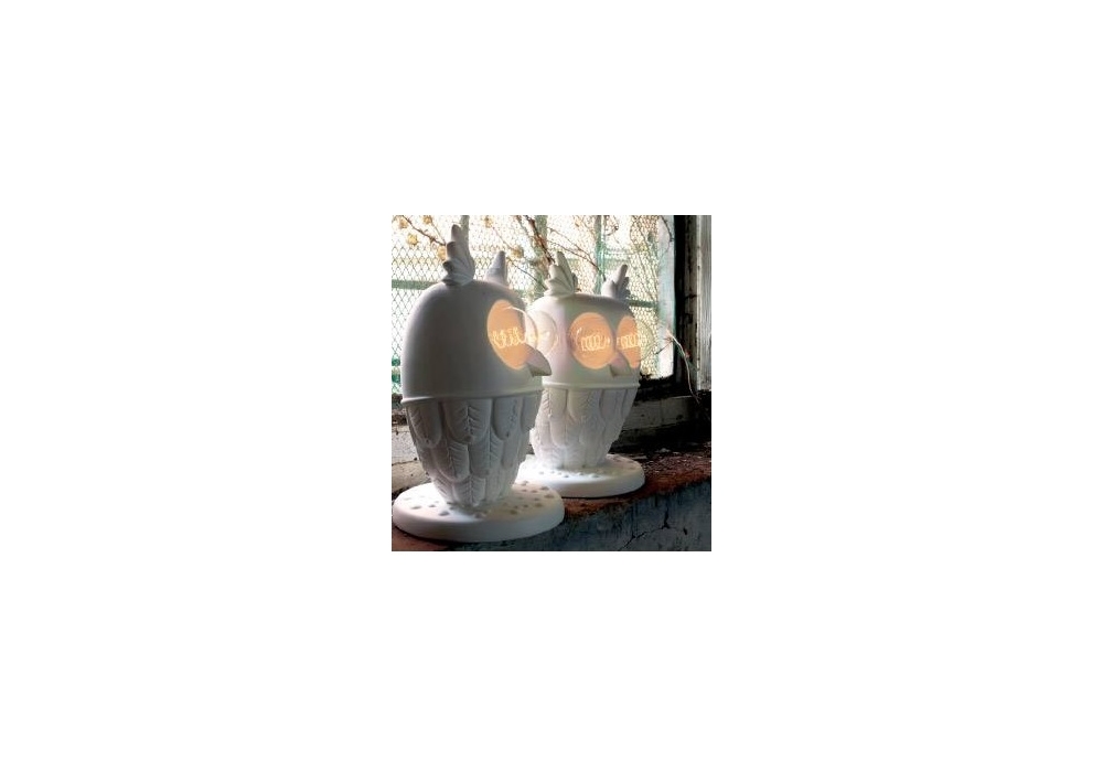 TI-VEDO firmata da Matteo Ugolini per Karman è una lampada da tavolo a forma di gufo realizzata in ceramica bianco opaco. Lampadina non inclusa.