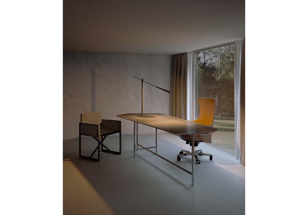 Flamingo firmata da Marc Sadler per Olev è una lampada da tavolo a LED snodabile con fascio luminoso orientabile. Driver incluso.