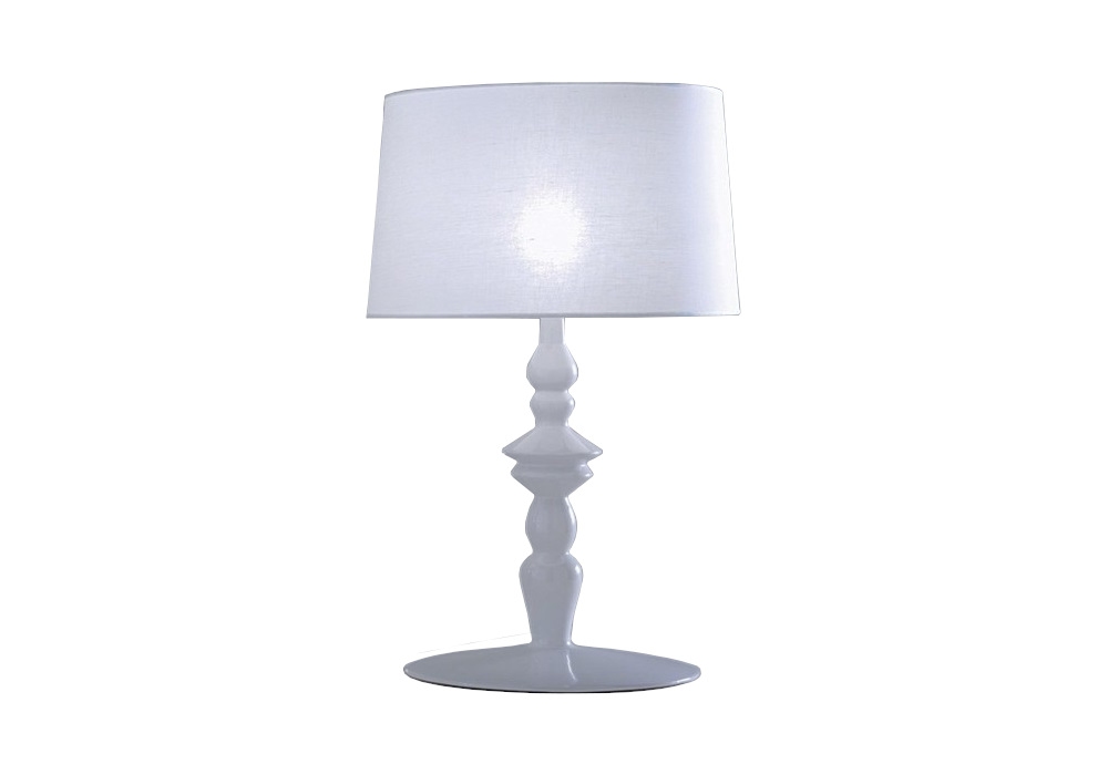 Alibababy firmata da Matteo Ugolini per Karman è una lampada da tavolo realizzata in ceramica bianco lucido e paralume di lino bianco. Lampadina non inclusa.