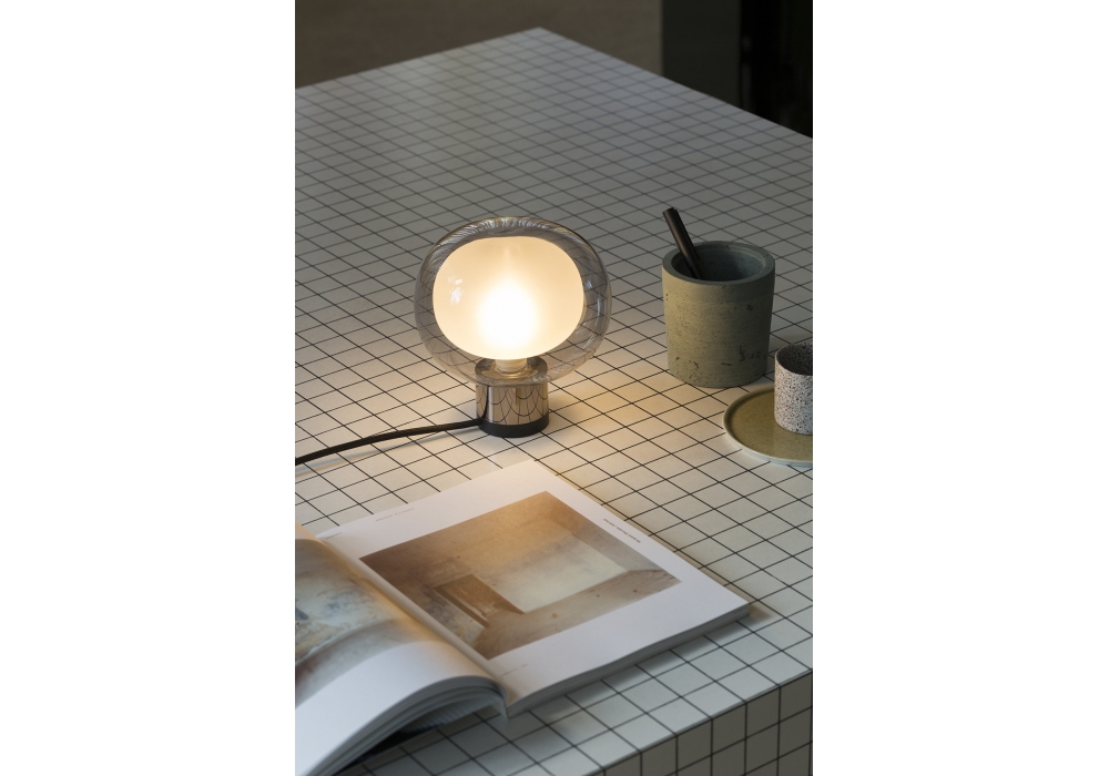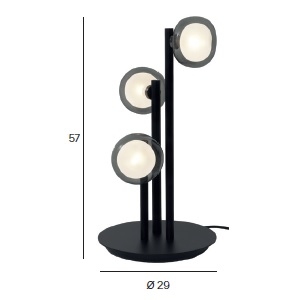 552 Nabila firmata da Corrado Dotti per Tooy è una lampada da tavolo con struttura in metallo nero opaco e paralume in vetro disponibile in 3 tipologie e 2 finiture. Il tipo grande (3 luci) è disponibile anche con dimmer integrato sul cavo. Lampadina non inclusa.