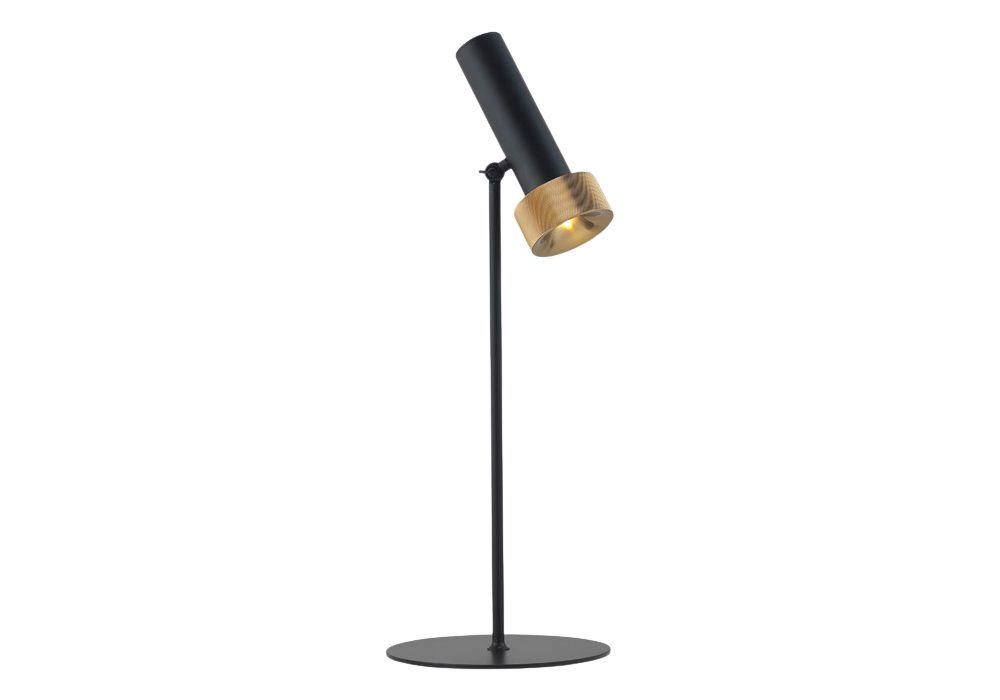 Focus firmata da Pepe Fornas per Aromas del Campo è una lampada da tavolo con struttura in metallo nero e diffusore in alluminio disponibile in tre varianti (oro antico, nickel o antracite).
