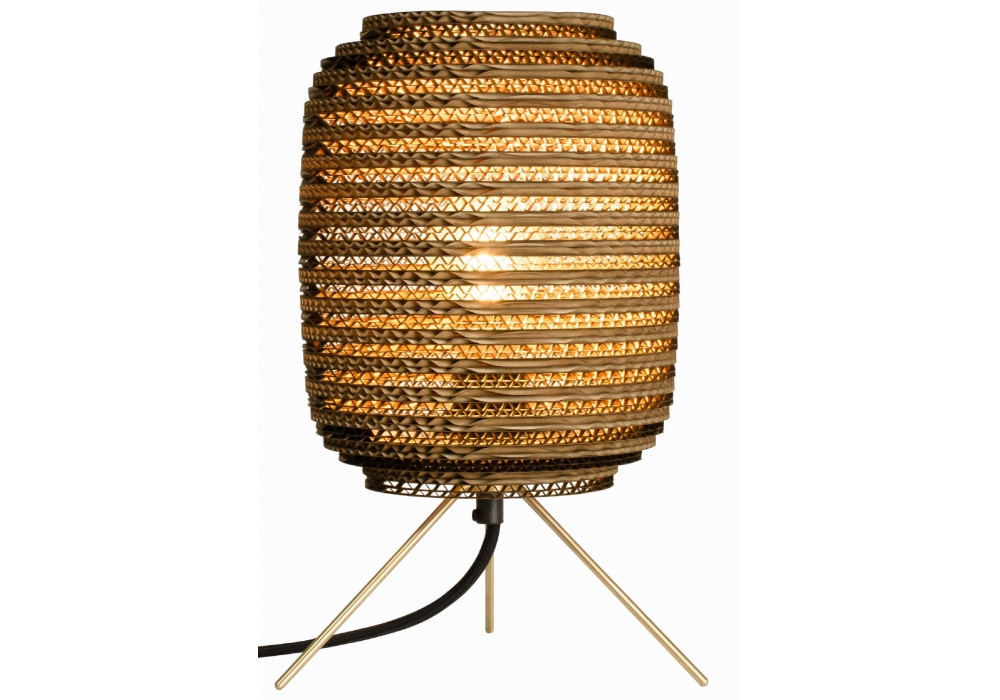 Ausi firmata da Graypants è una lampada da tavolo con struttura in ottone lucido e diffusore in cartone ondulato disponibile in due colori (bianco e natural).