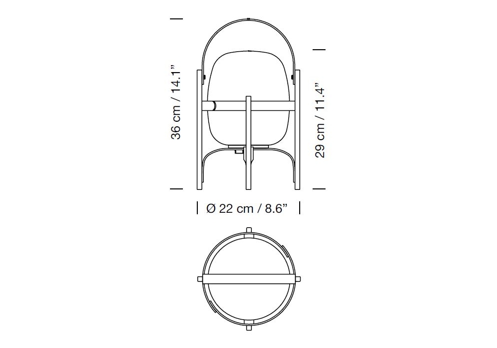 Cestita Alubat firmata da Miguel Milá per Santa&Cole è una lampada da tavolo con diffusore opale bianco. Struttura in alluminio nero. Interruttore incorporato nell'apparecchio con 3 livelli di intensità. Batteria al litio. Tempo di ricarica della batteria: 6,5h.
