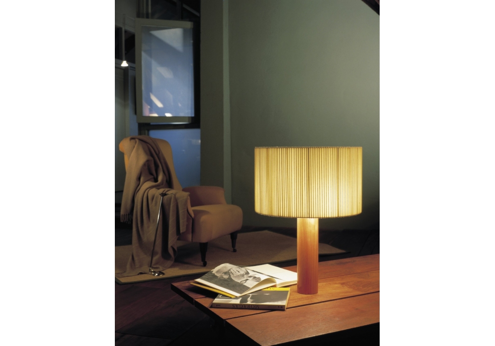 Morages firmata da Antoni de Moragas i Gallissà per Santa&Cole è una lampada da tavolo con diffusore cilindrico e struttura in legno disponibile in vari tipi di legno.