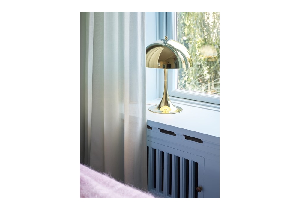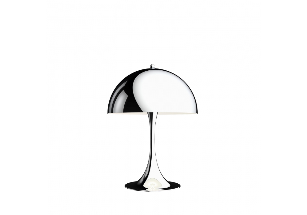 Panthella 320 firmata da Verner Panton per Louis Panton è una lampada da tavolo con struttura portante in alluminio pressofuso. Lo schermo è in acrilico mentre il diffusore è in PMMA opalino e scherma una sorgente luminosa con innesto E14 di tipo LED o alogena. Panthella 320 è disponibile in differenti finiture.