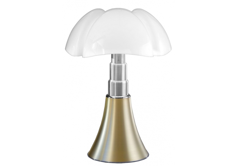 Pipistrello 620 firmata da Gae Aulenti per Martinelli Luce è una lampada da tavolo con braccio centrale telescopico in acciaio inox e base in metallo verniciato. Il diffusore è in metacrilato opalino bianco e scherma una sorgente luminosa di tipo LED. Pipistrello 620 è disponibile in differenti finiture.