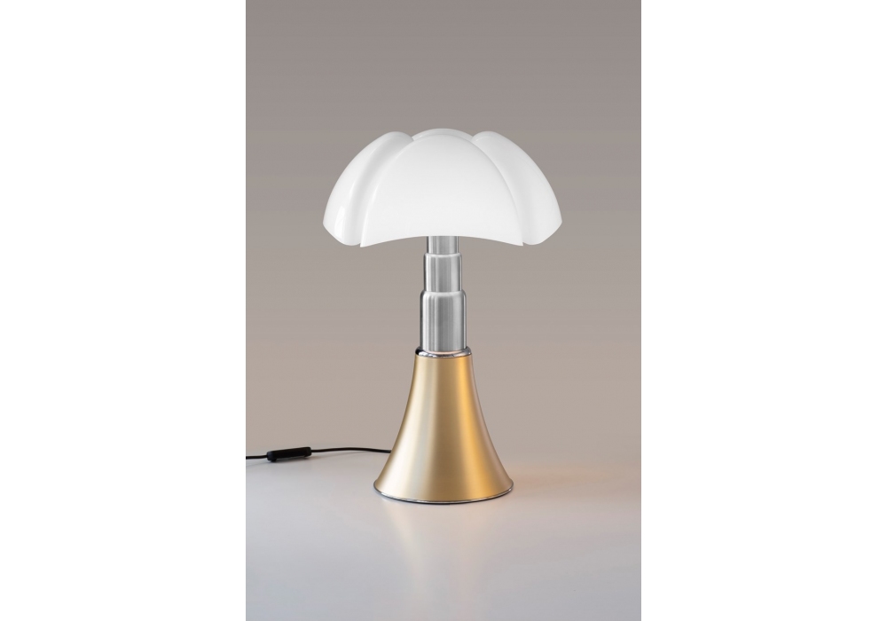 Pipistrello Med firmata da Gae Aulenti per Martinelli Luce è una lampada da tavolo con braccio centrale telescopico in acciaio inox e base in metallo verniciato. Il diffusore è in metacrilato opalino bianco e scherma una sorgente luminosa di tipo LED integrata dimmerabile. Pipistrello Med è disponibile in differenti finiture.