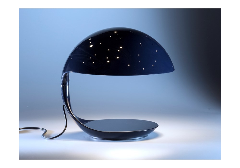 Cobra Scorpius firmata da Elio Martinelli per Martinelli Luce è una lampada da tavolo con braccio rotante interamente strutturata in materiale plastico. Il diffusore di forma tondeggiante caratterizzato da vari fori e scherma una sorgente luminosa di tipo LED. Cobra Scorpius è disponibile in un unica finitura blu notte.