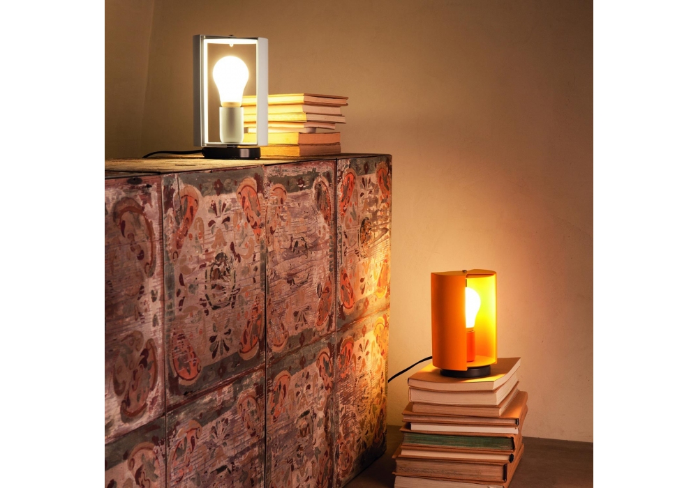 Pivotante à Poser firmata da Charlotte Perriand per Nemo, è una lampada da tavolo strutturata da un cilindro metallico con due finestre scorrevoli, l'apertura delle finestre determinano l'ampiezza e il grado del fascio luminoso. Pivotante à Poser è disponibile in differenti finiture.