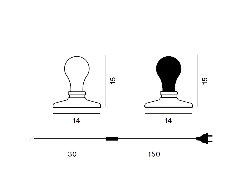 Light Bulb firmata da James Wines / SITE per Foscarini è una lampada da tavolo con base circolare strutturata dalla combinazione di vetro soffiato ed alluminio. La sorgente luminosa adottata è di tipo LED dimmerabile alimentata da un cavo in materiale plastico trasparente. Light Bulb è disponibile in differenti finiture.