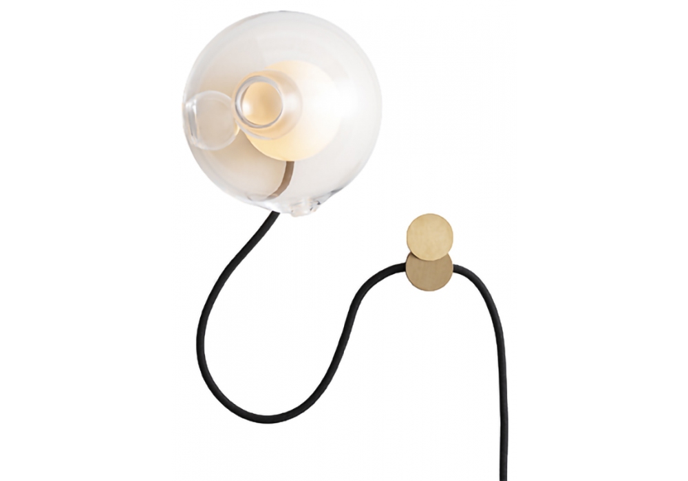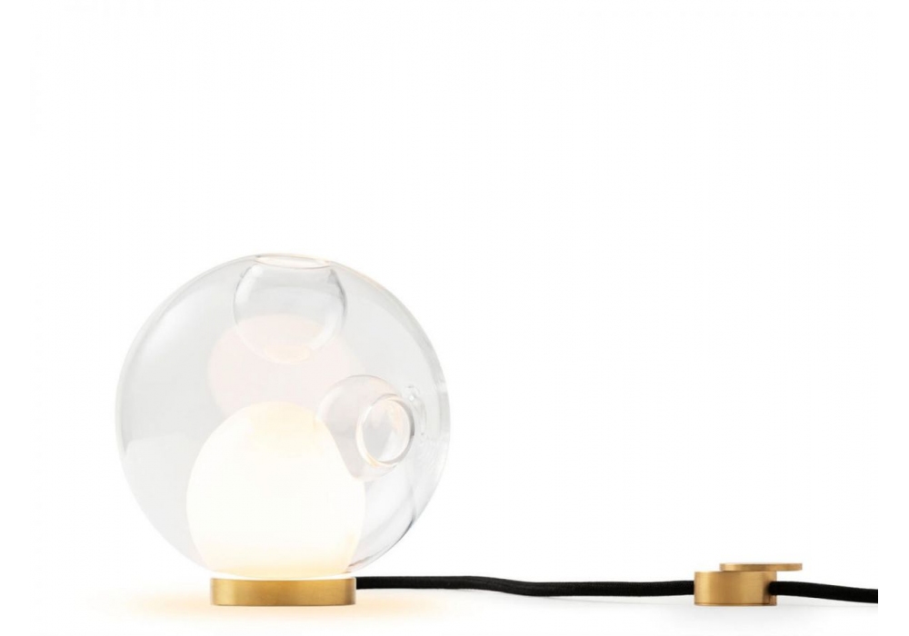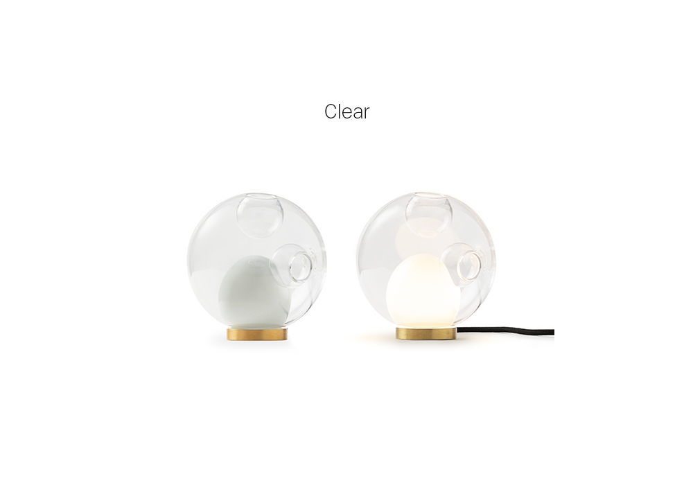 28t Clear firmata da Omer Arbel per Bocci è una lampada a da tavolo con base circolare in ottone e diffusore in vetro soffiato trasparente. La sorgente luminosa è a led con controllo di accensione circolare in ottone.