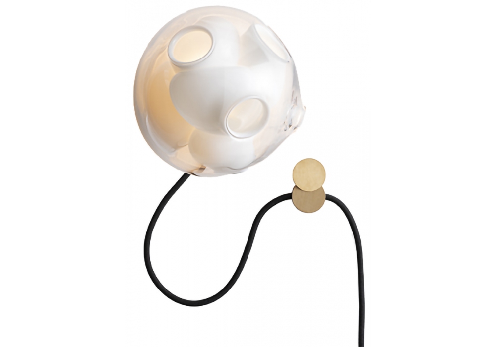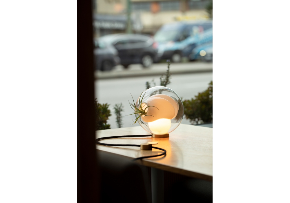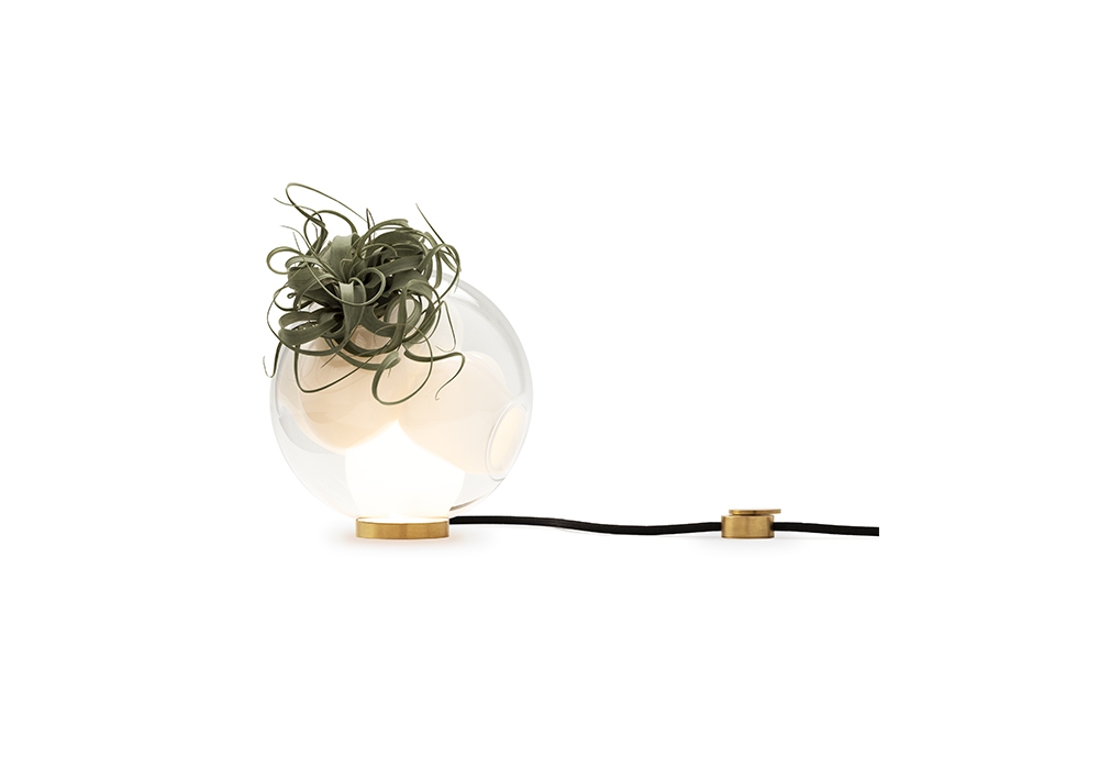 38Vt firmata da Omer Arbel per Bocci è una lampada a da tavolo con base circolare in ottone e diffusore in vetro soffiato trasparente. La sorgente luminosa è a led con controllo di accensione circolare in ottone.
